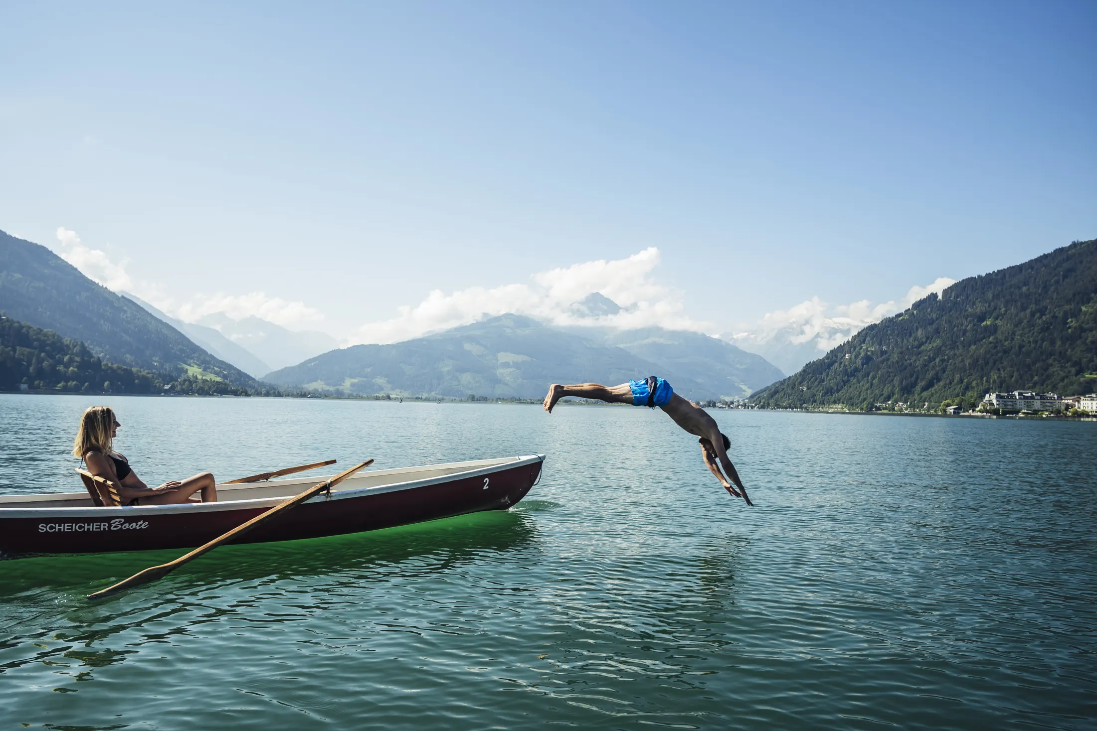 Im glasklaren Zeller See spiegeln sich die die mächtigen Berggipfel und die wunderschöne Landschaft beeindruckt durch sattes grün im Sommer und schneebedeckte Berge im Winter.